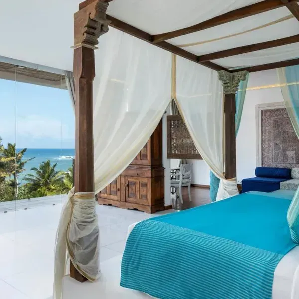 Ayurvie Weligama offers several accommodation options, including Deluxe Rooms, Master Suites, Garden Lofts, and Courtyard Rooms. All rooms are non-smoking, air-conditioned, and equipped with private bathrooms and free Wi-Fi. Many rooms feature sea views and balconies, while others offer garden views and direct access to a shared green courtyard and a walking path leading to the beach.